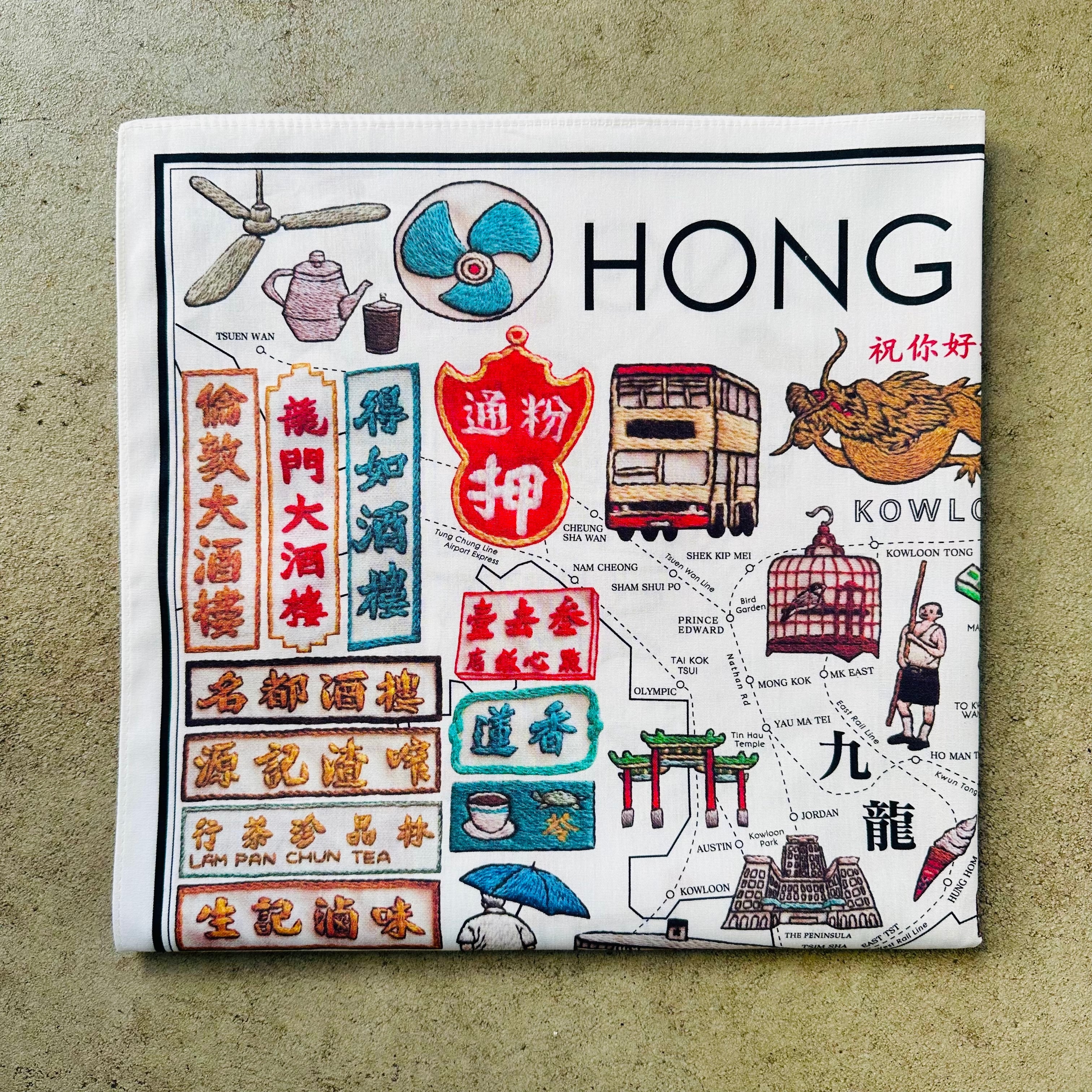 数量限定! ハンカチ 香港地図・英語版・大判サイズ